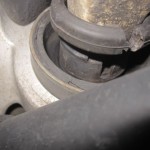 BMW 5シリーズ E60 車検点検整備でご入庫です。足廻りのブッシュに大きな亀裂が有り、ハンドルの舵角と車輌の動きがぴったりと合わない感じが出ていました。今回のブッシュはフロントロアアームです。こちらはブッシュのみでも部品設定が有るタイプでしたので、アームを外してブッシュの打ち替え作業で対応が出来ました。